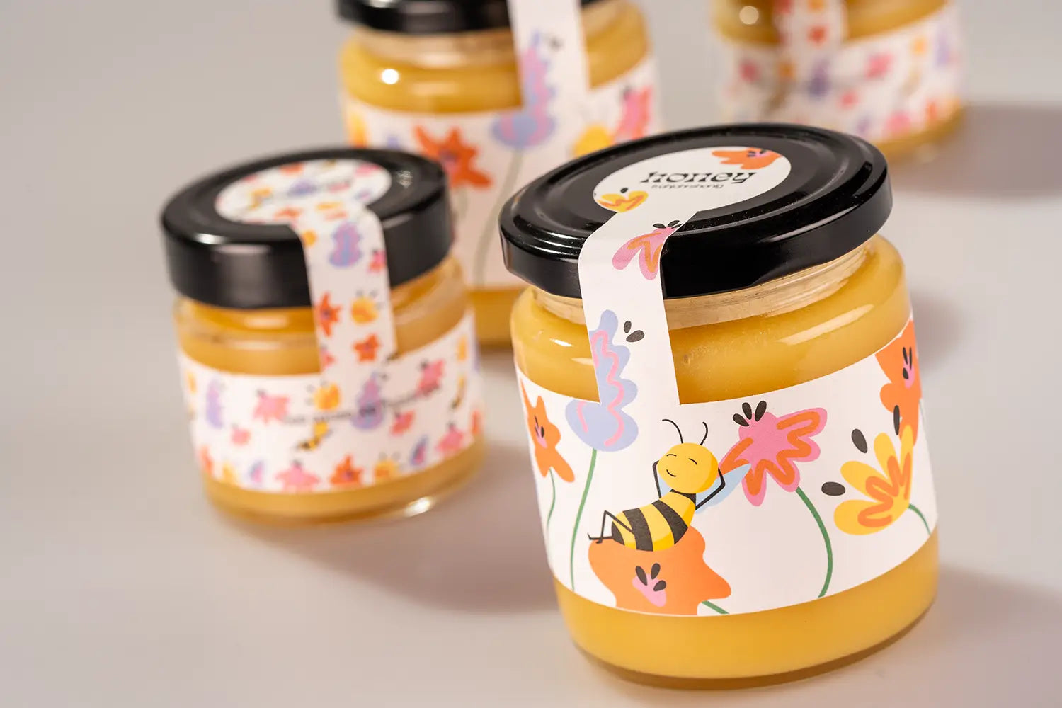 Honig ist nicht einfach nur Honig und deine Etiketten sollten das auch nicht sein. Ob du Honigetiketten selbst gestalten möchtest, Honigetiketten mit Gewährverschluss brauchst oder einfach hochwertige Honigetiketten kaufen willst – wir sorgen dafür, dass dein Glas schon im Regal so gut aussieht wie der Inhalt schmeckt. Mit unseren selbstklebenden Honigetiketten bekommst du brillante Druckqualität, passgenaue Formen und Materialien, die genauso hochwertig sind wie dein Honig. Egal ob für kleine Chargen aus der Hobbyimkerei oder für große Serien – wir drucken deine Etiketten für Honiggläser ganz ohne Mindestbestellmenge, nachhaltig produziert und immer mit persönlicher Beratung.