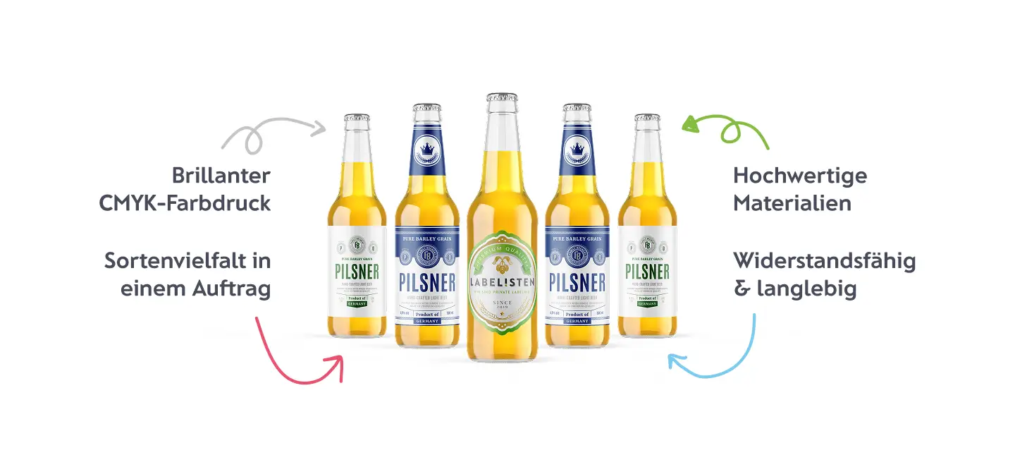 Whether craft beer, traditional brewery or limited edition – your beer deserves a label that’s as unique as its taste. With us, you can have beer labels printed that fit your brand perfectly: from elegant and minimalist to bold and creative. We print your beer bottle labels in top quality on roll stock – ready for filling, sales and, of course, beer enjoyment.